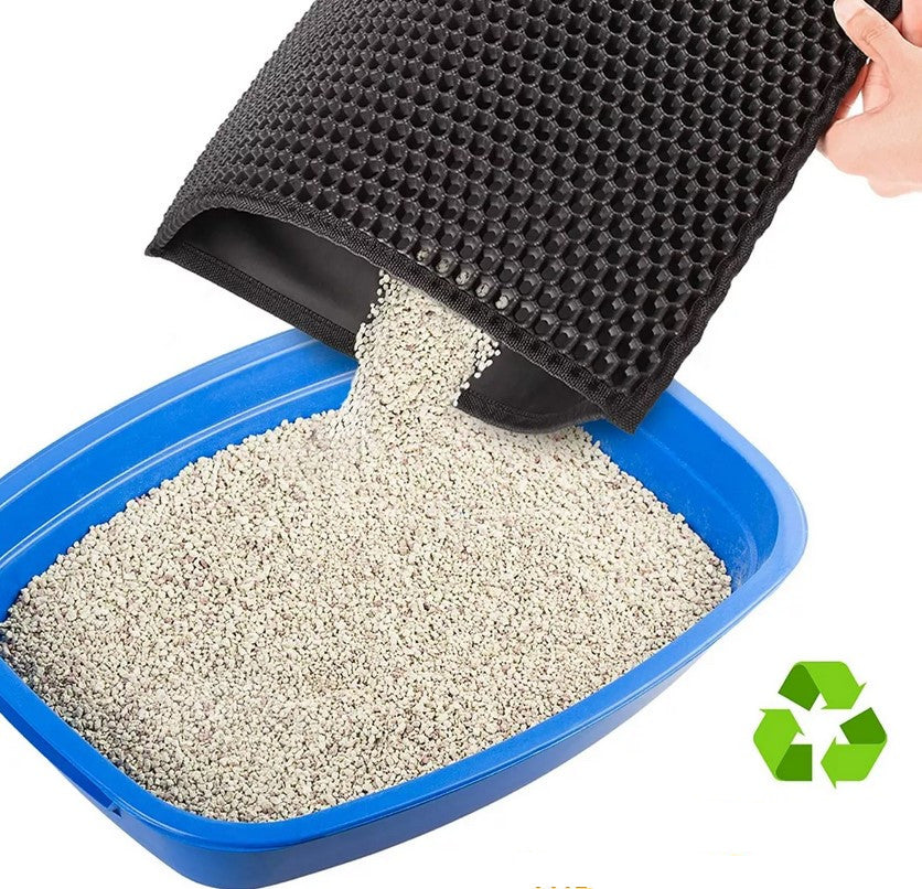 ALFOMBRA DE DOBLE CAPA: El diseño de panal de abeja de doble capa ayuda a atrapar la basura de manera efectiva; Simplemente levante el tapete, comprima para separar las dos capas e inclínelo para volcar la basura en la caja o basura; No más pisar piedras de basura y barrer o aspirar constantemente; Los orificios tipo panal brindan una superficie acolchada para los gatos y permiten que la arena caiga a la capa inferior